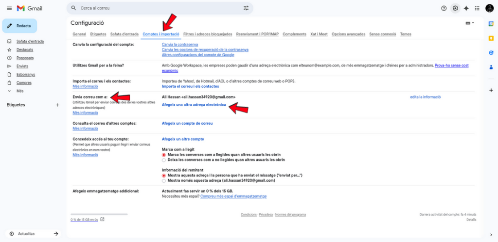 Passos per configurar l’enviament en nom d’un altre compte a Gmail corporatiu