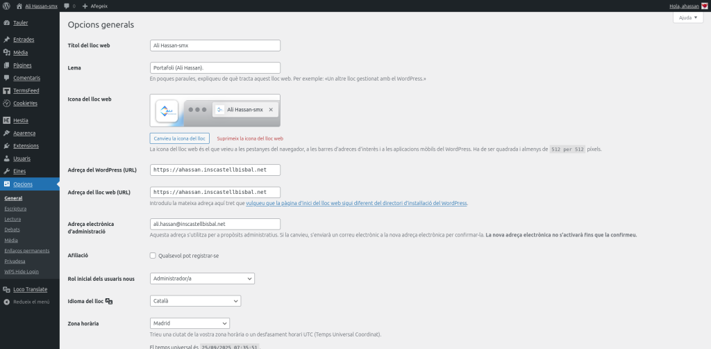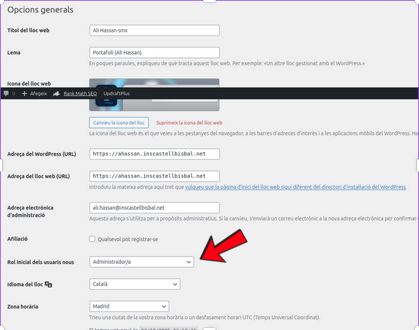 aleshores, en general, a la part inferior hi haurà l’opció de noms com a Rol inicial de l’usuari i canviar-lo per administració.