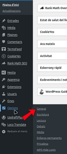 Per accedir a l’administració de WordPress, primer aneu a la vostra pàgina de WordPress i a la part inferior esquerra hi haurà una opció escrita per introduir-hi i el menú general.