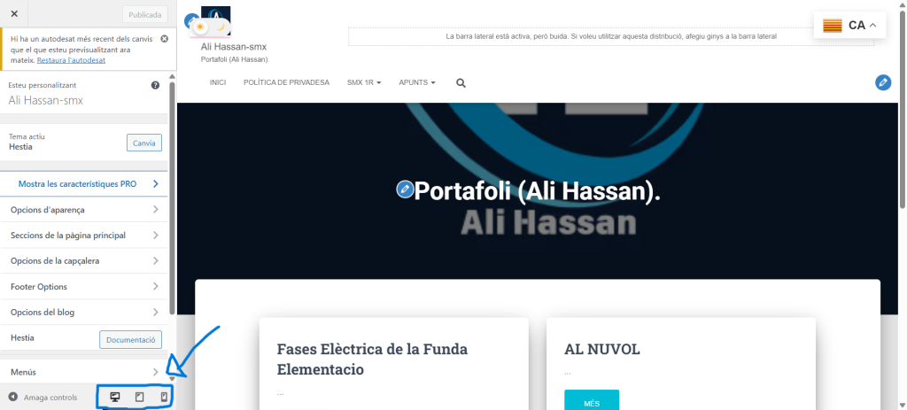 Per mirar el disseny del teu web hi ha un opcio de ver que com es veu teu web en Ordinador,tauletes,movil.