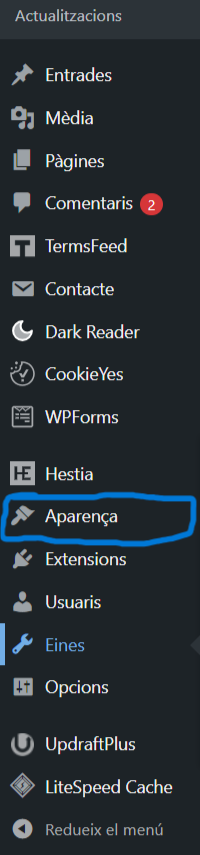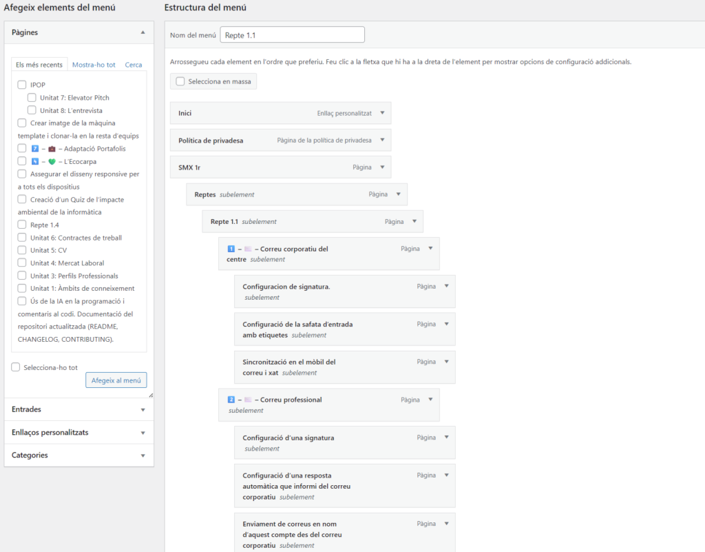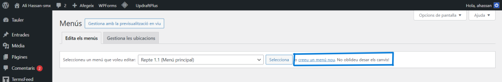 Per crear un menu per meu wordpress,he entrat en wordpress amb meu compte de admin: