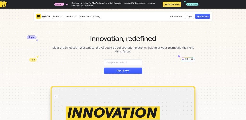 - Obrir el navegador: Ves a la pàgina oficial de Miro (https://miro.com