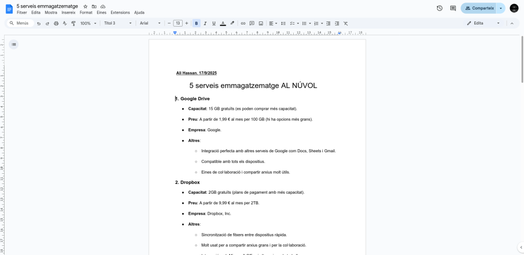 Per utilitzar el marcador, heu d’obrir el Google Drive i després anar a qualsevol document que hàgiu creat.