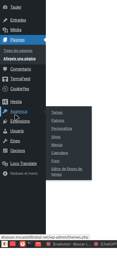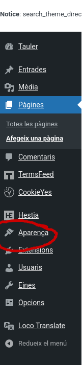 només cal anar a la pàgina de WordPress i a la part inferior esquerra hi haurà escrit “aparença”.
