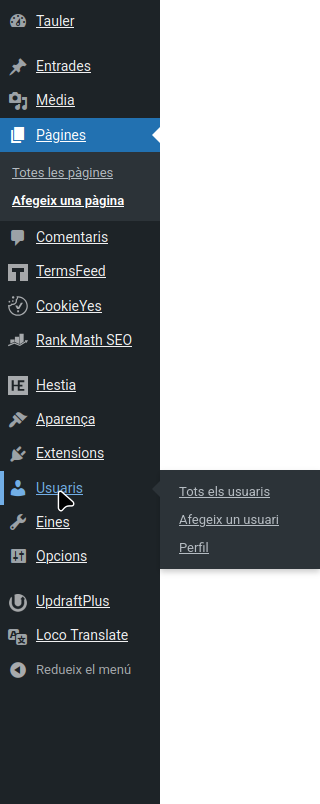 Només cal anar al WordPress a la part inferior esquerra, allà hi haurà escrit “usuaris, aneu-hi”.