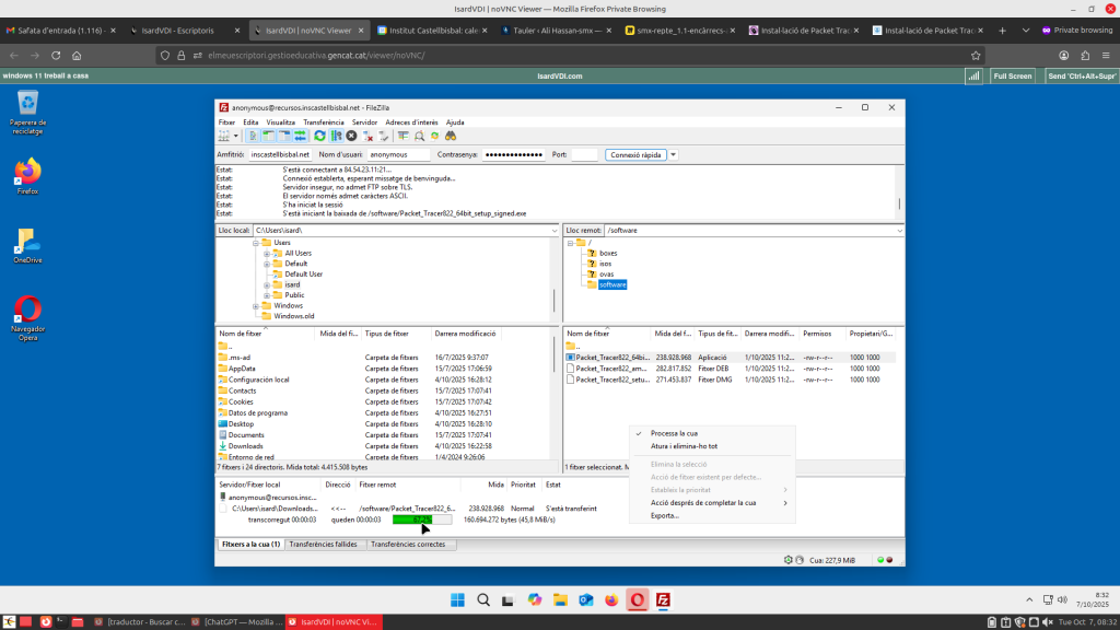Per instal·lar Packet Tracer heu d’anar a Filezilla i escriure aquesta informació.