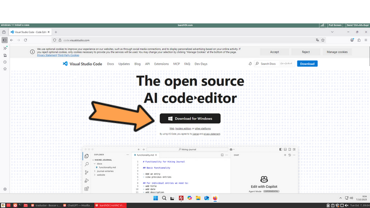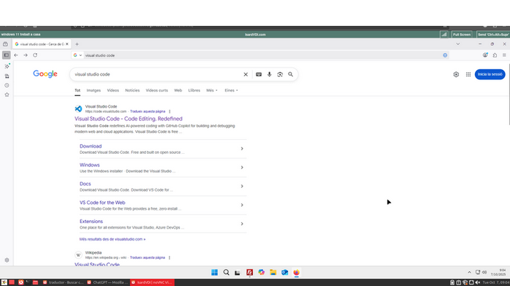 Per instal·lar el codi del Visual Studio, només cal que aneu al vostre navegador i cerqueu el codi del Visual Studio.