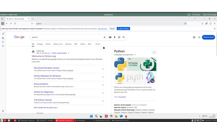 Ara per a la instal·lació de Python farem el mateix que al Visual Studio, anem al navegador i cerquem Python.feu clic a la primera pàgina i obriu-la.