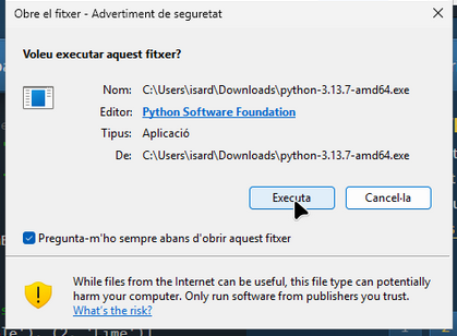 Se descargará y después de la descarga haga clic en el archivo de Python.després feu clic a executar.