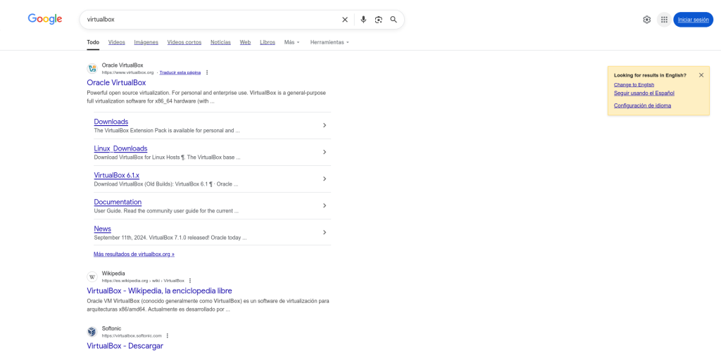 Per instal·lar Virtualbox, només cal que aneu al navegador i cerqueu Virtualbox, aneu a la primera pàgina que apareix.