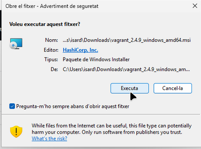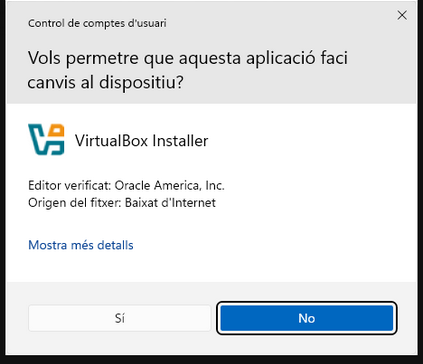 Després de la descàrrega, feu clic al fitxer de VirtualBox i feu clic a l’opció Sí.