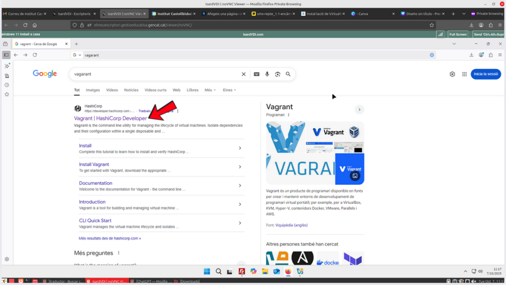 Per instal·lar Vagrant, només cal que aneu al navegador, cerqueu Vagrant i feu clic a la primera pàgina.