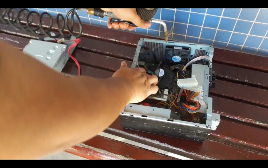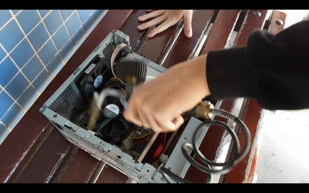 Hem netejat l’ordinador i les seves parts amb un compressor d’aire que llança l’aire molt ràpid i elimina la brutícia de les peces.